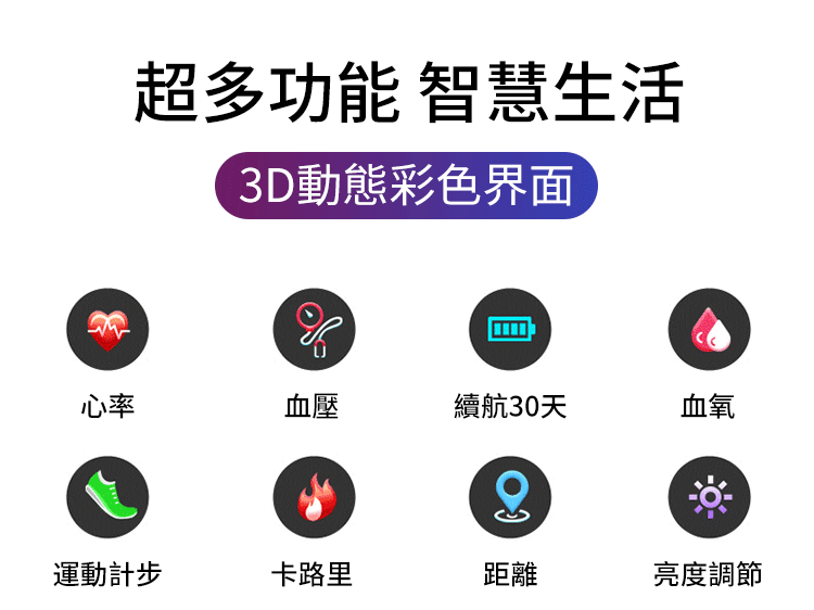 【低价实惠,功能强大】 彩屏智能运动手表,可测心率,血压检测,行走步数、距离和消耗的燃烧的热量等20种功能,30天續航,游泳級防水,可以让我们一边工作一边测试自己的健康!【超夯特惠:兩件NT$1298】 【貨到滿意後付款】